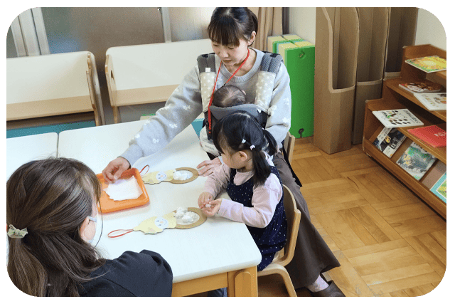 - (お子さまの様子に合わせて、いつ来てもいつ帰っても大丈夫です。)